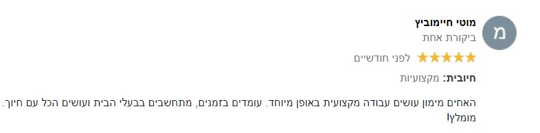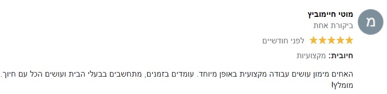 מרבית הלקוחות מגיעים מפה לאוזן, ולא בכדי – שורת הלקוחות המרוצים הממליצים על חברת מימון מאיר ובניו הם אלו שמצדיקים את המוניטין החיובי של החברה, כזאת שניתן לסמוך עליה. ליאור ואלירן מתחייבים לעמוד בלוח זמנים מדויק ובתקציב שנקבע מראש – מבטיחים ומקיימים.